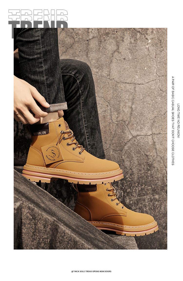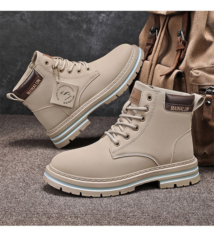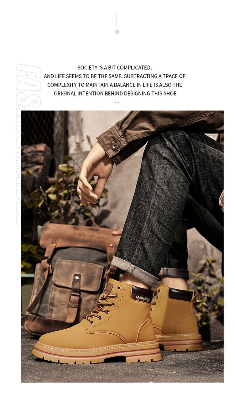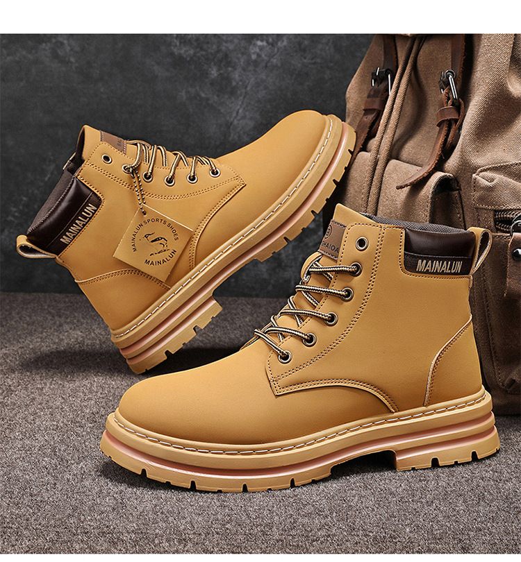 Plus-size men's Martin boots, men's autumn and winter high-top hiking boots, yellow boots