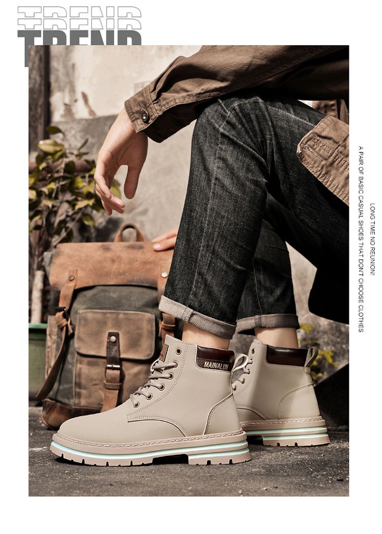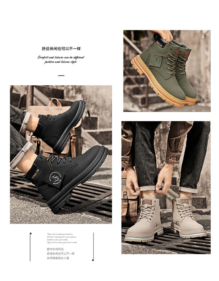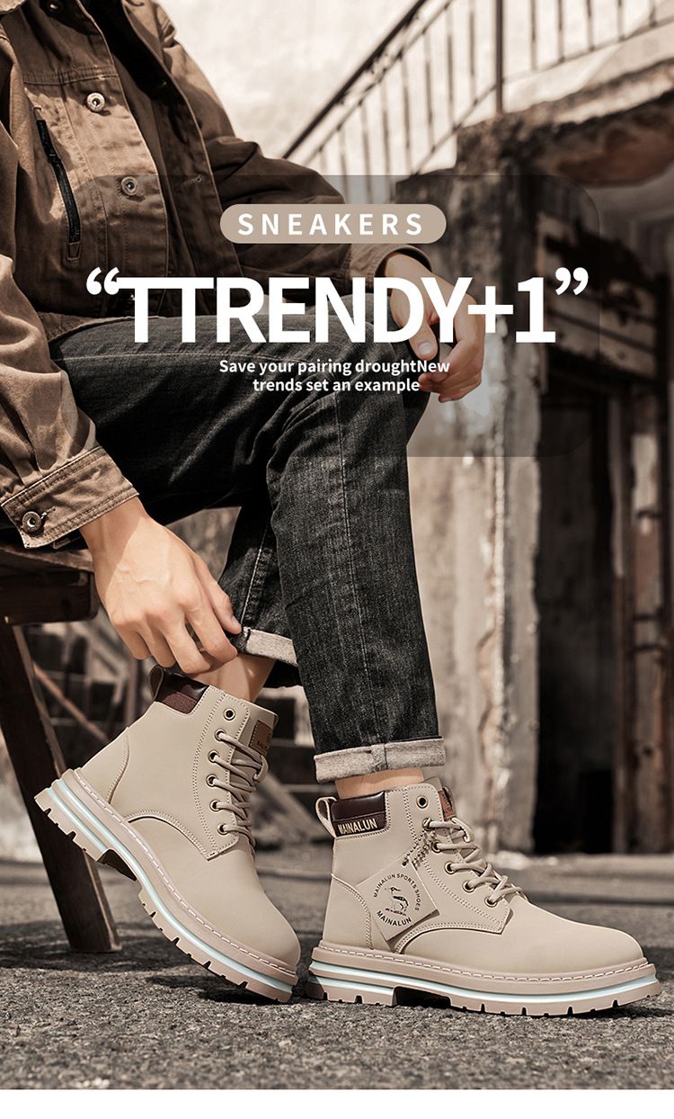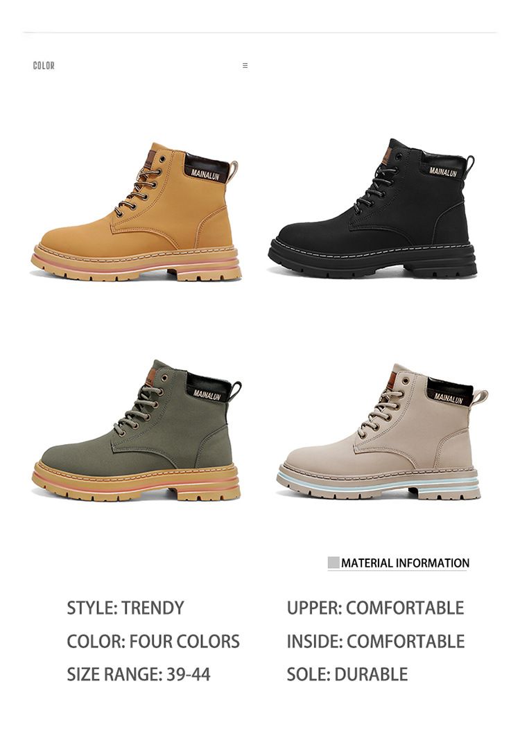Plus-size men's Martin boots, men's autumn and winter high-top hiking boots, yellow boots
