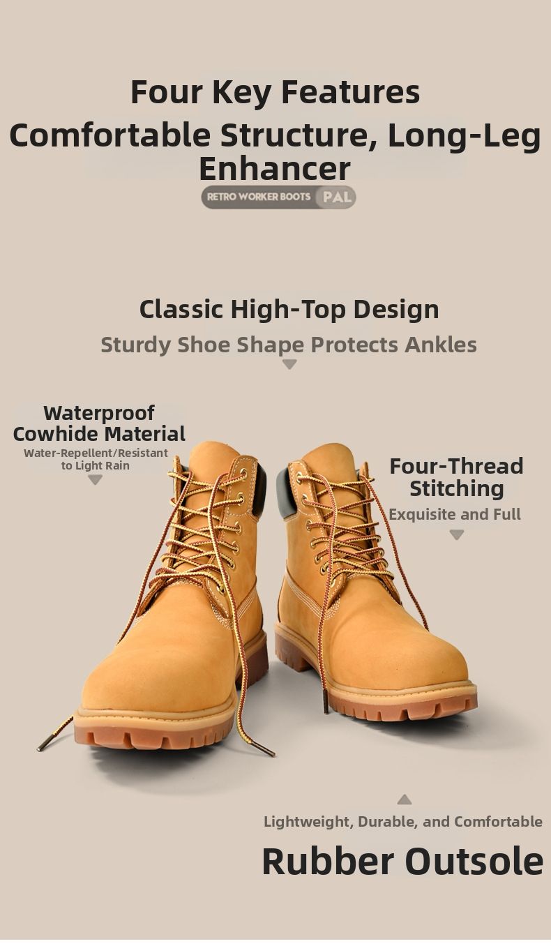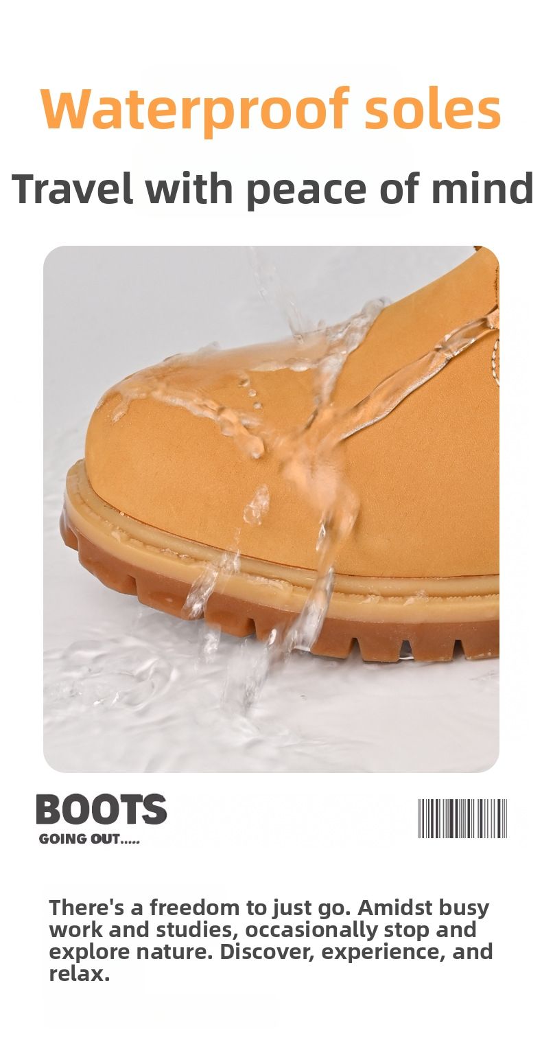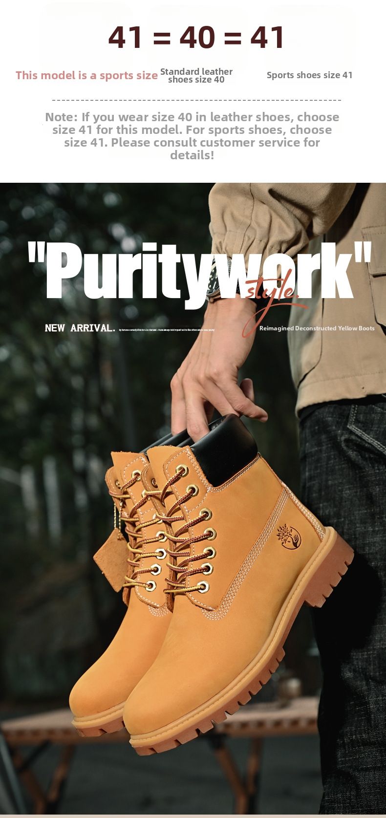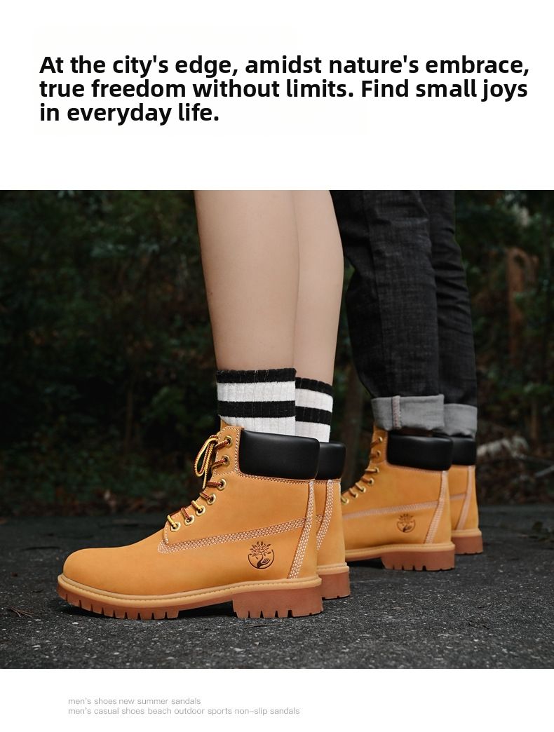 Autumn Winter High-Top Yellow Boots, Plus Size Waterproof Leather Boots, Unisex Martin Boots, Couple Style British Work Shoes