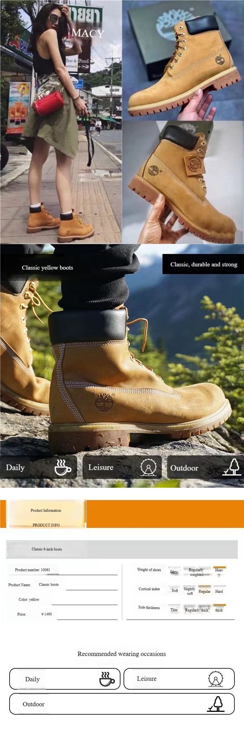 Durable First-Layer Leather Outdoor Yellow Boots, Couple Style, Trendy Martin Boots for Men and Women, High-Top Shoes