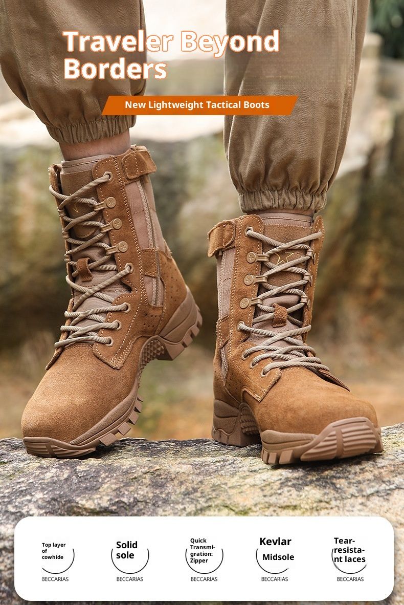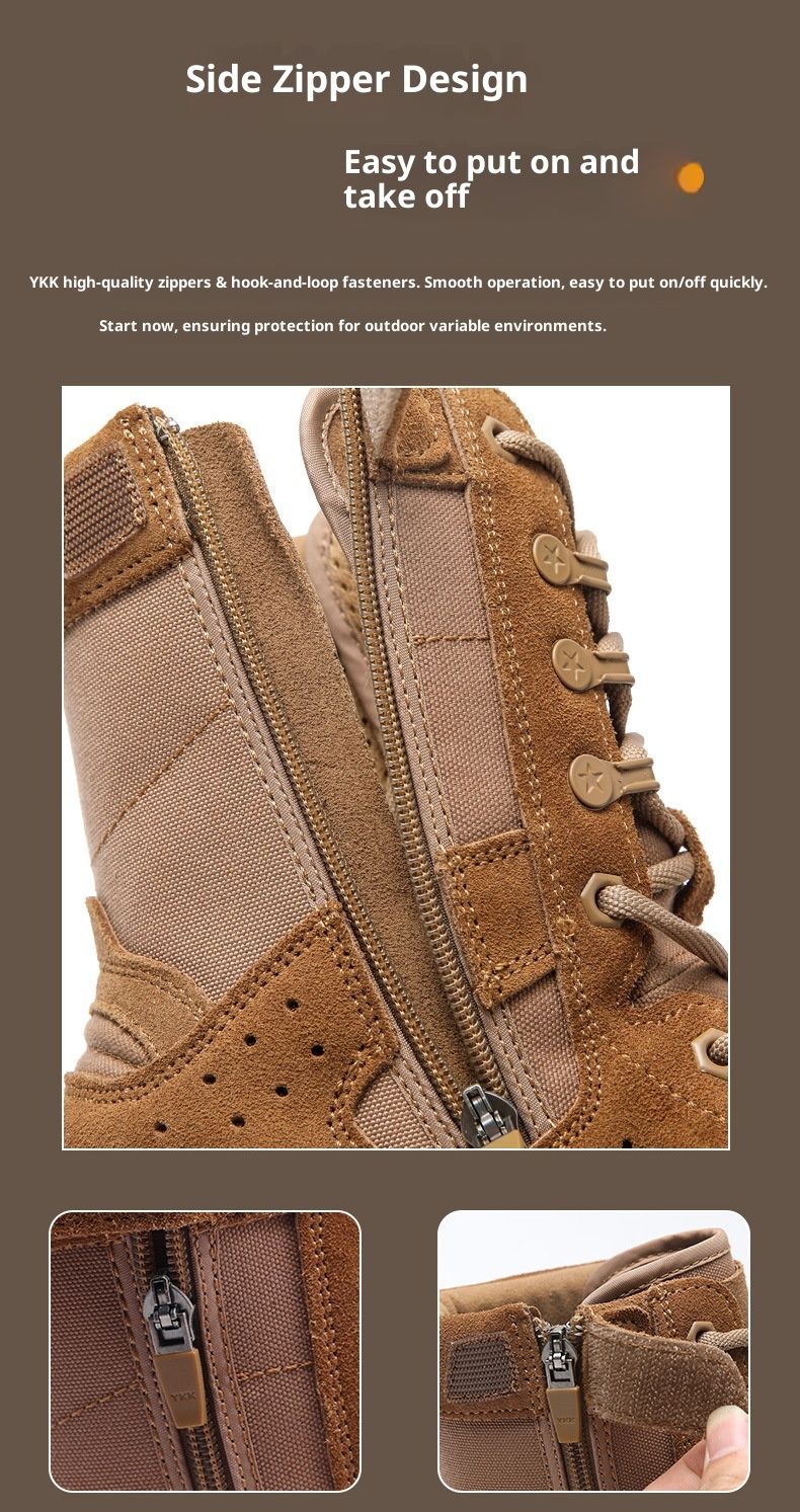 New Style Brown Military Boots for Men, Combat Training Boots, Desert Side-Zip Waterproof Outdoor Anti-Slip Training Boots