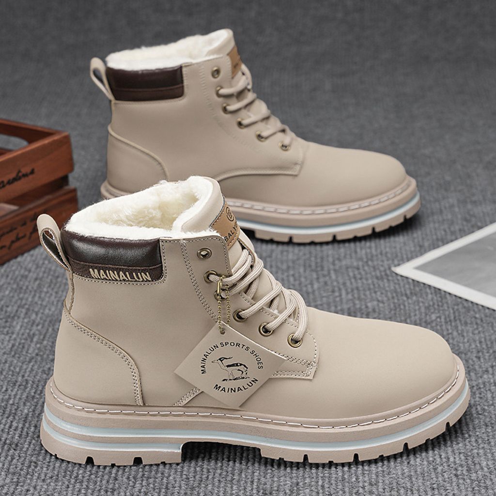 Plus-size men's Martin boots, men's autumn and winter high-top hiking boots, yellow boots