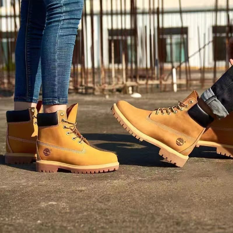 Durable First-Layer Leather Outdoor Yellow Boots, Couple Style, Trendy Martin Boots for Men and Women, High-Top Shoes