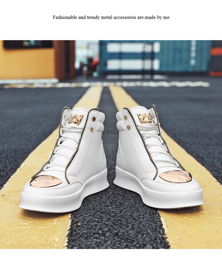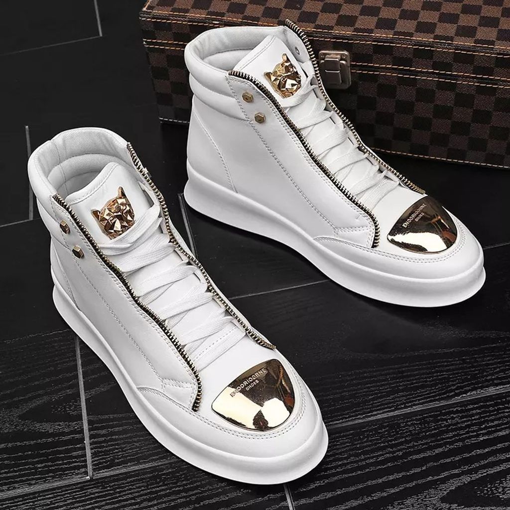 New Men's Martin Boots High-Top Sneakers Metal Casual Leather Boots Korean Trendy Street Dance Shoes