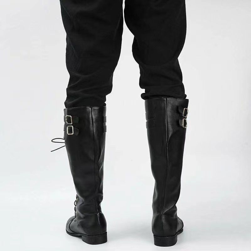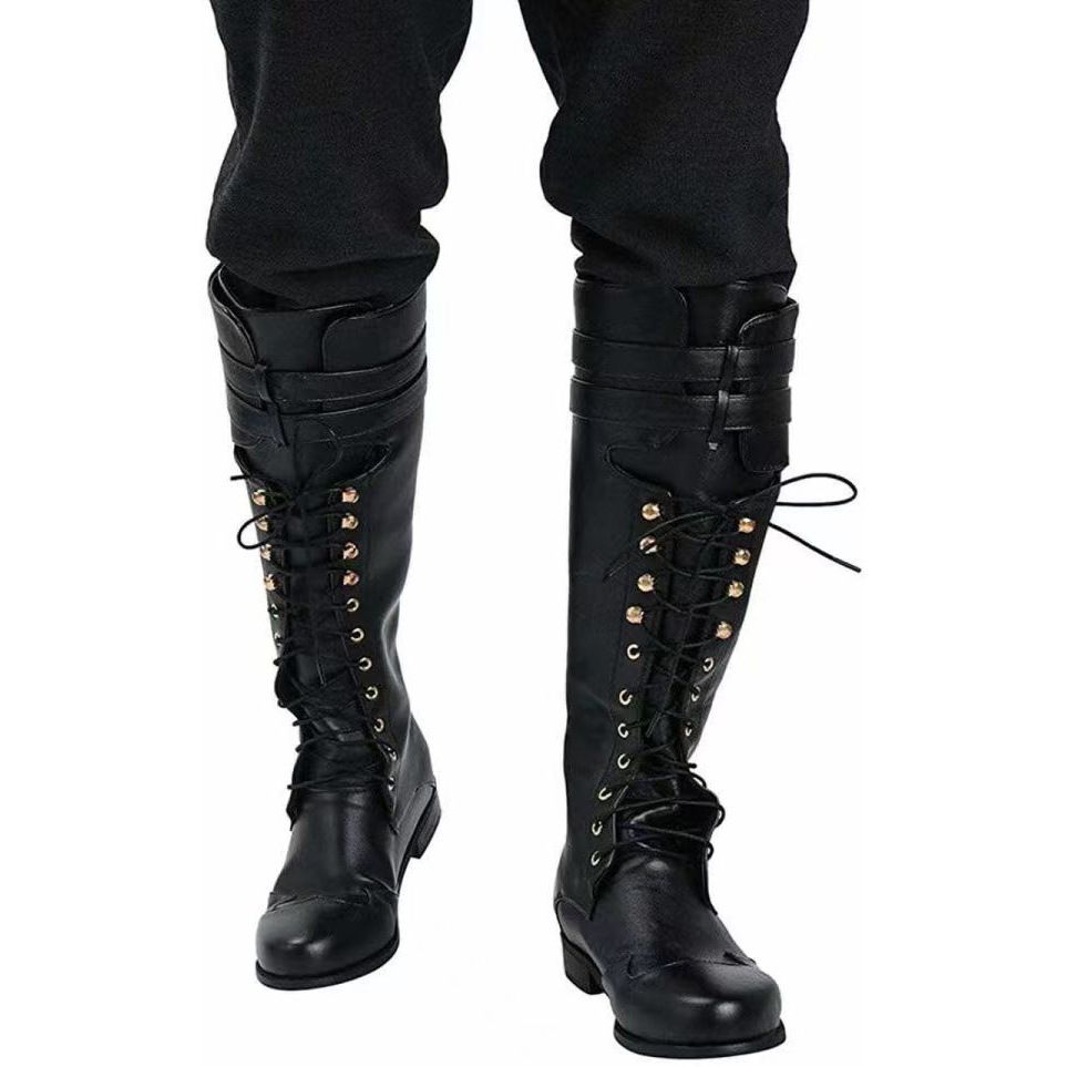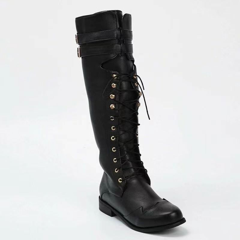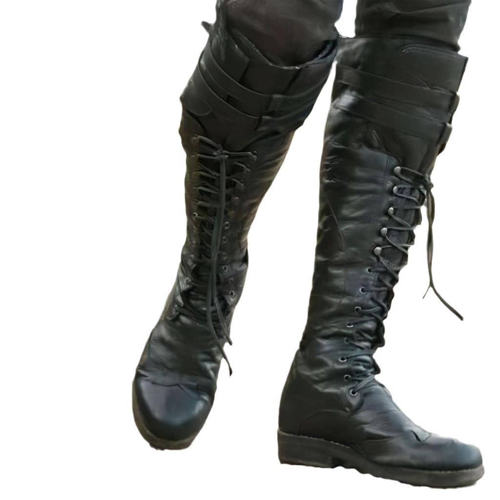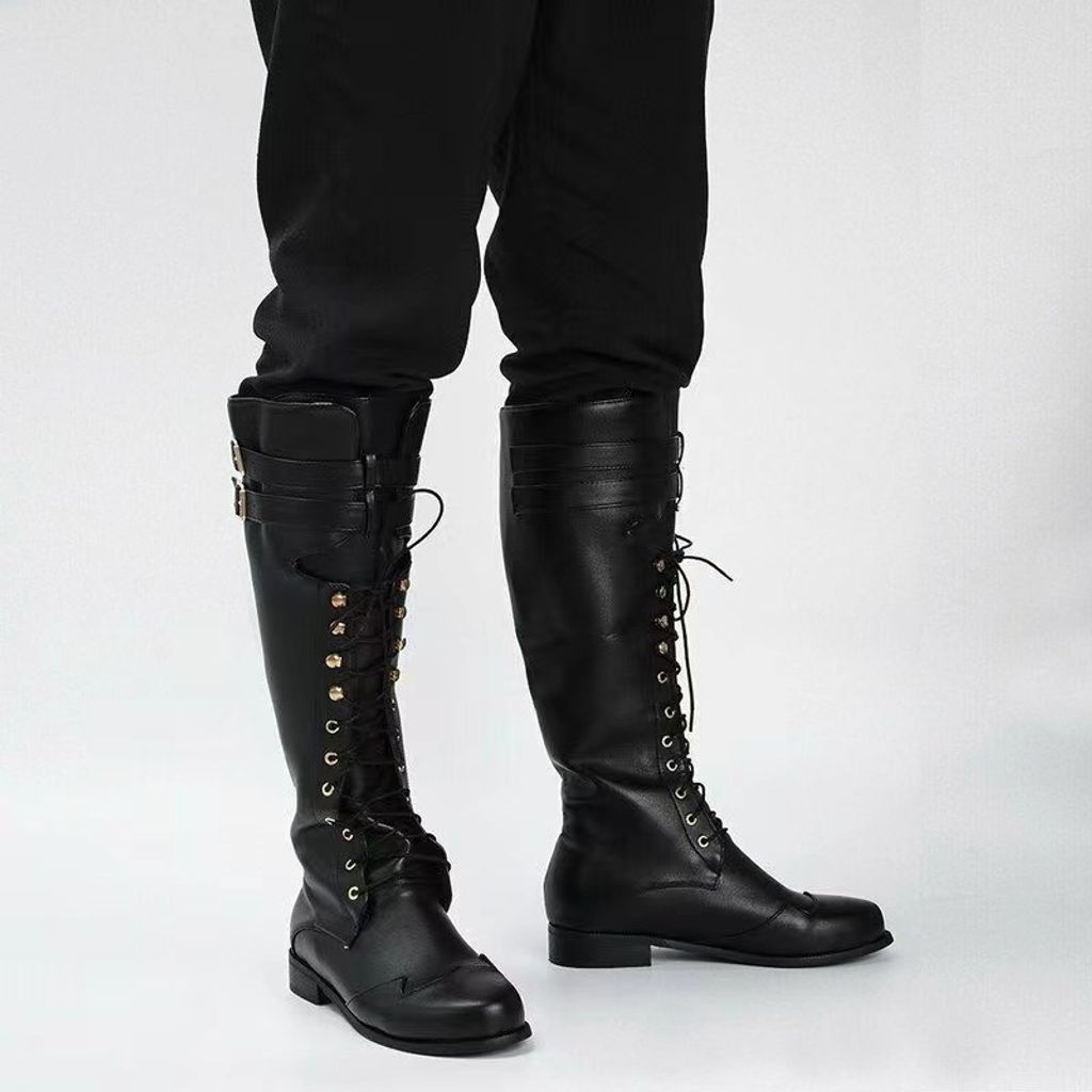 New Retro Lace-Up Motorcycle Boots Large Size Men's Biker Boots