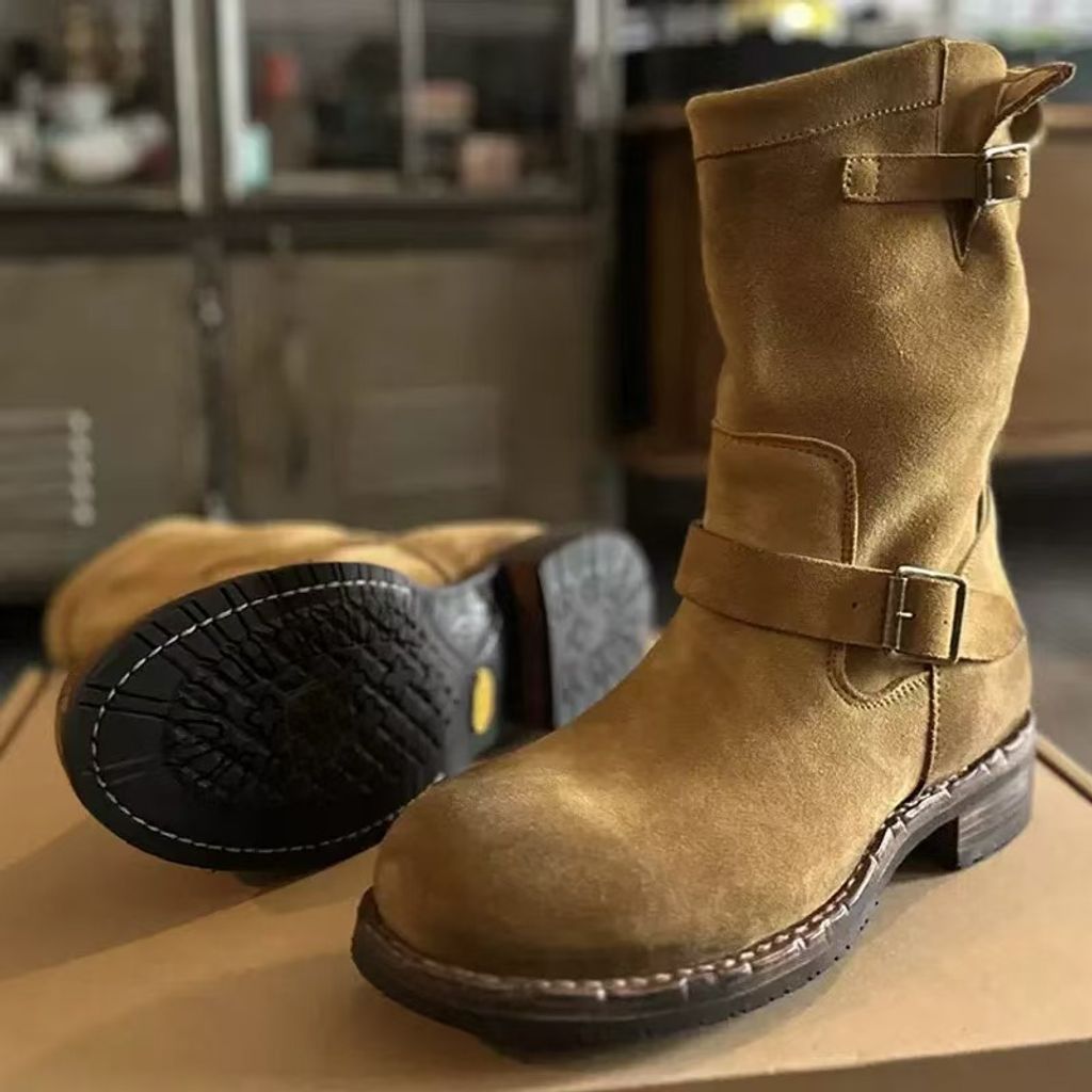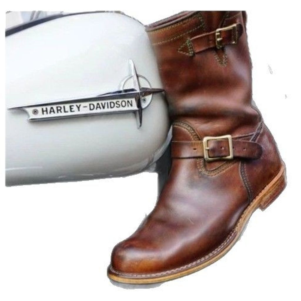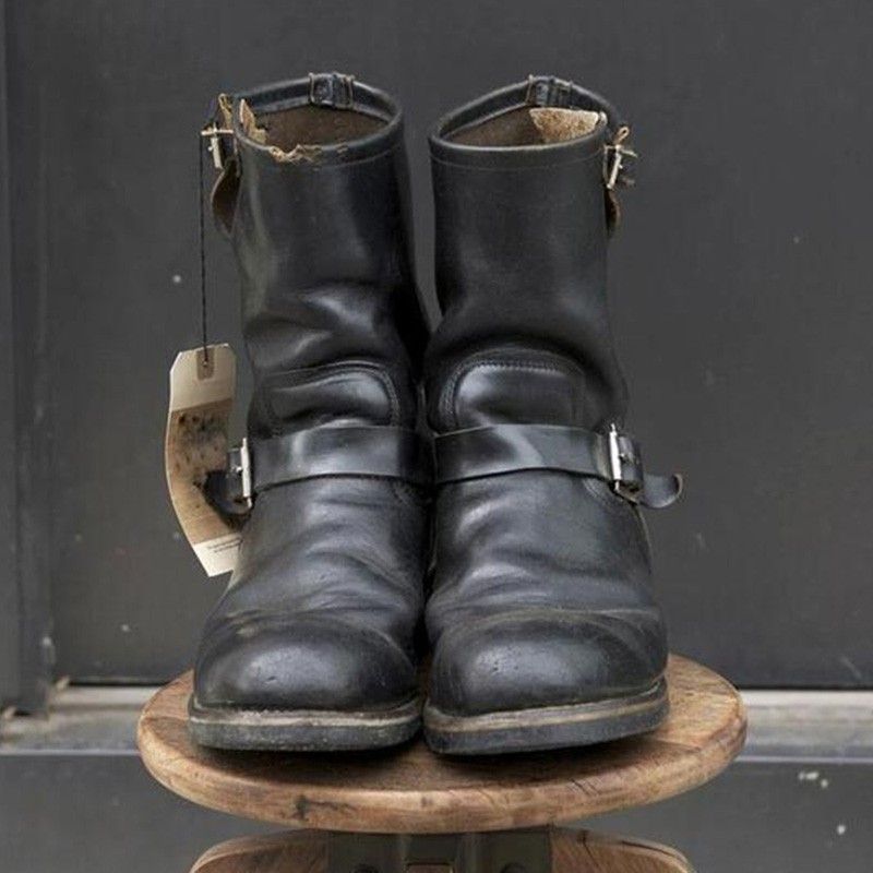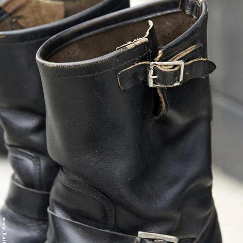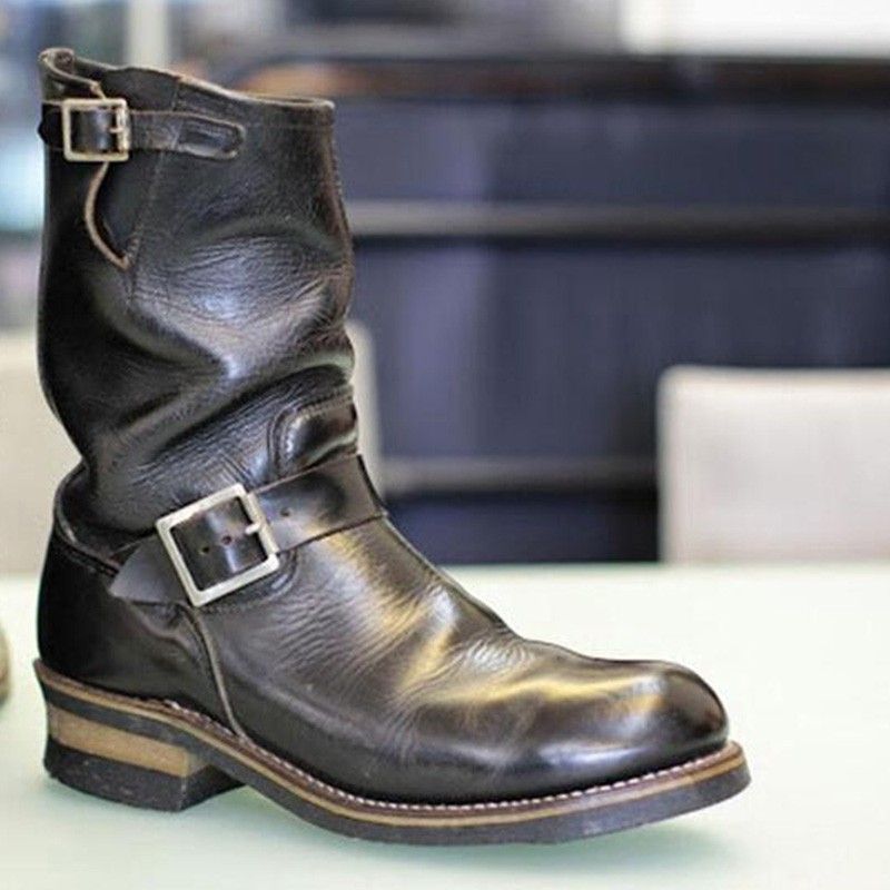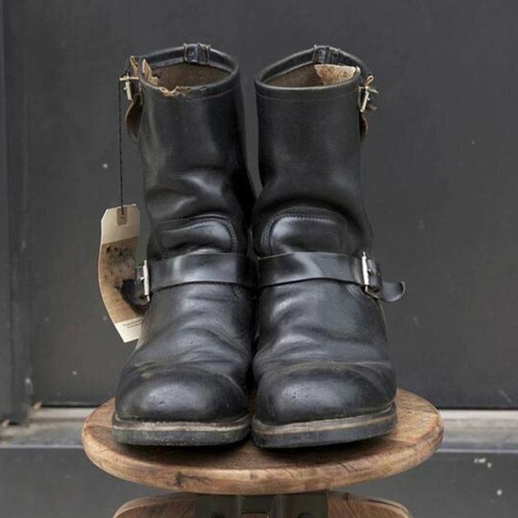 New Side-Zip Solid Color Men's Black Metal Block Heel Winter Trend Round-Toe Martin Boots