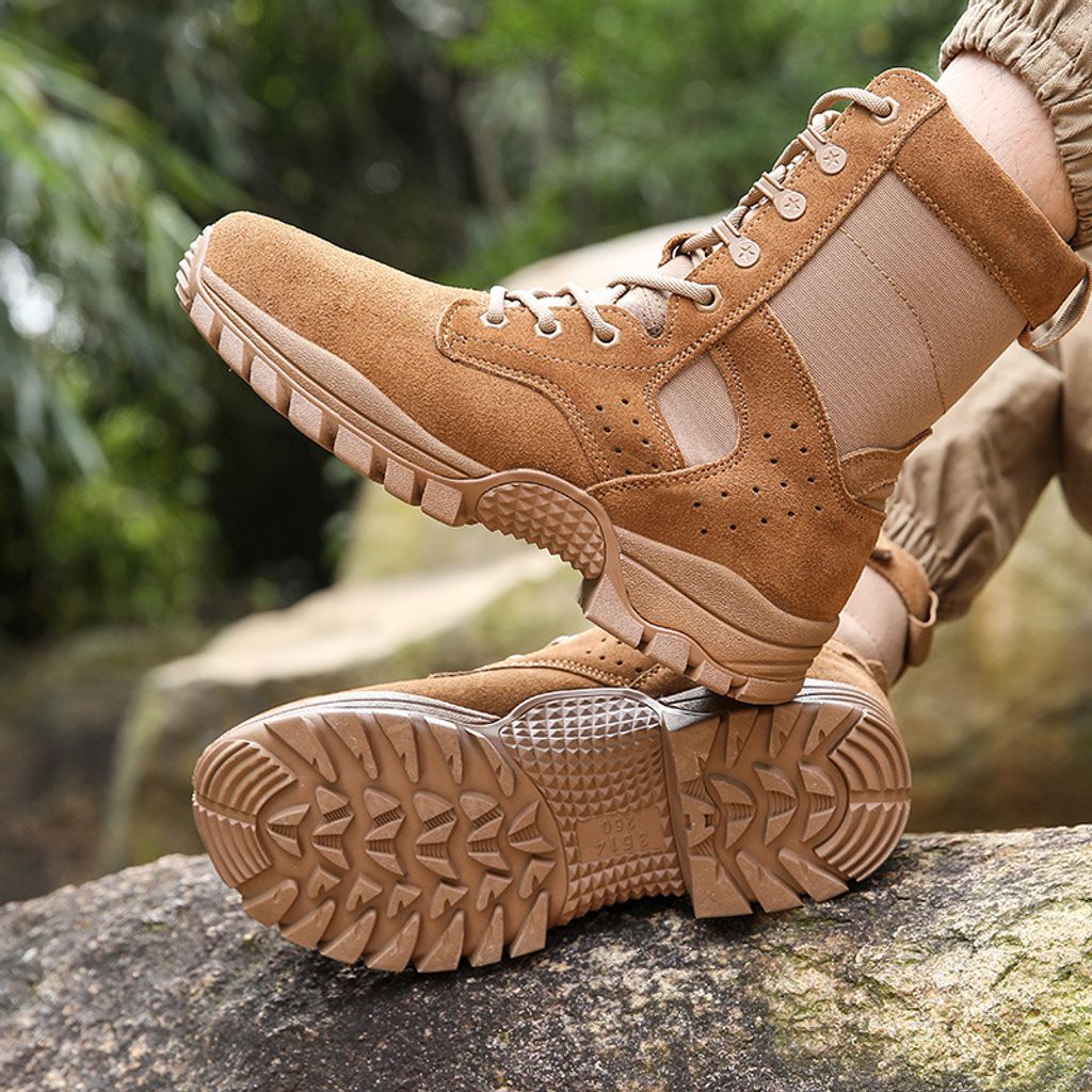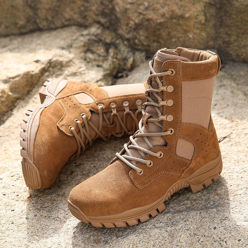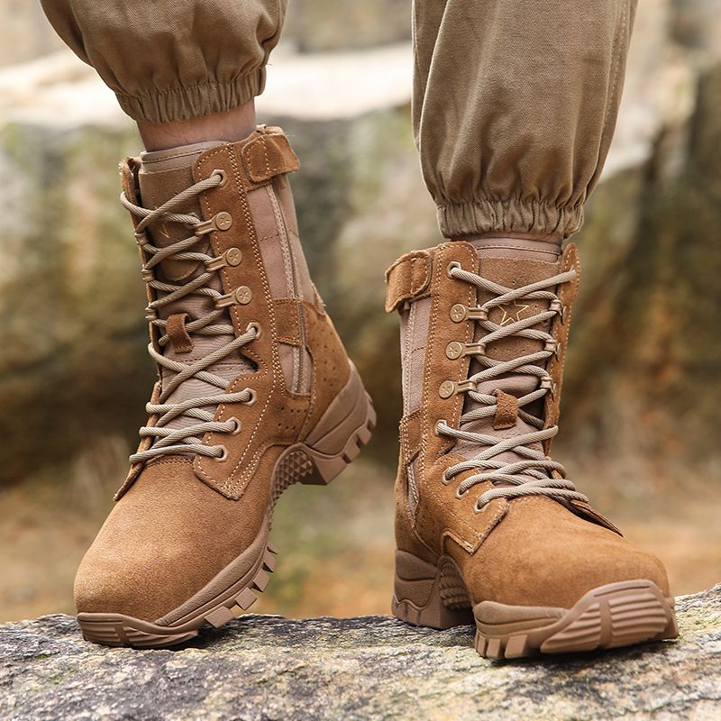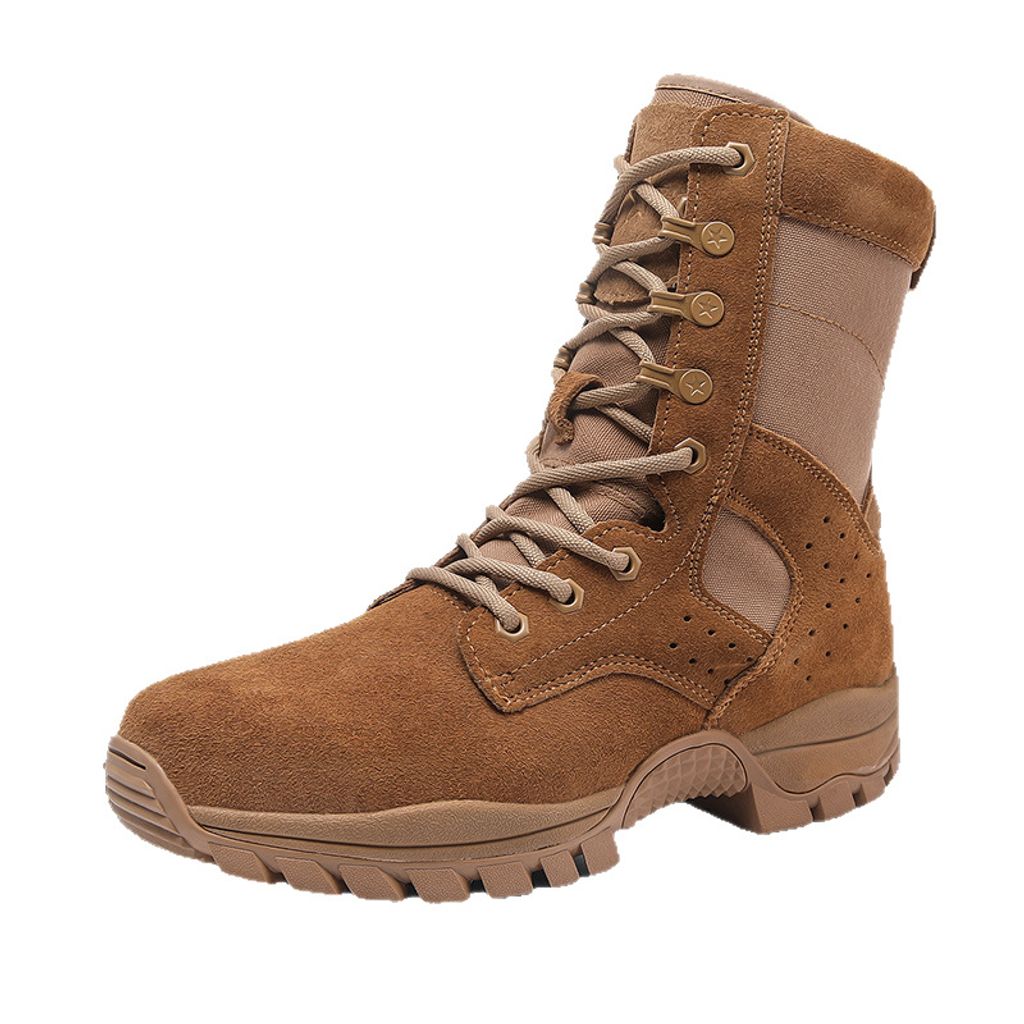 New Style Brown Military Boots for Men, Combat Training Boots, Desert Side-Zip Waterproof Outdoor Anti-Slip Training Boots