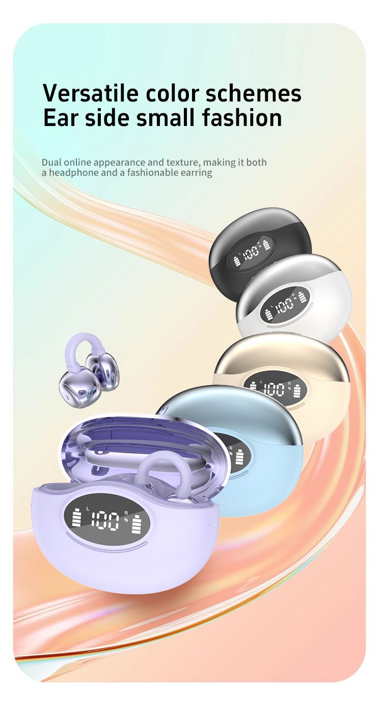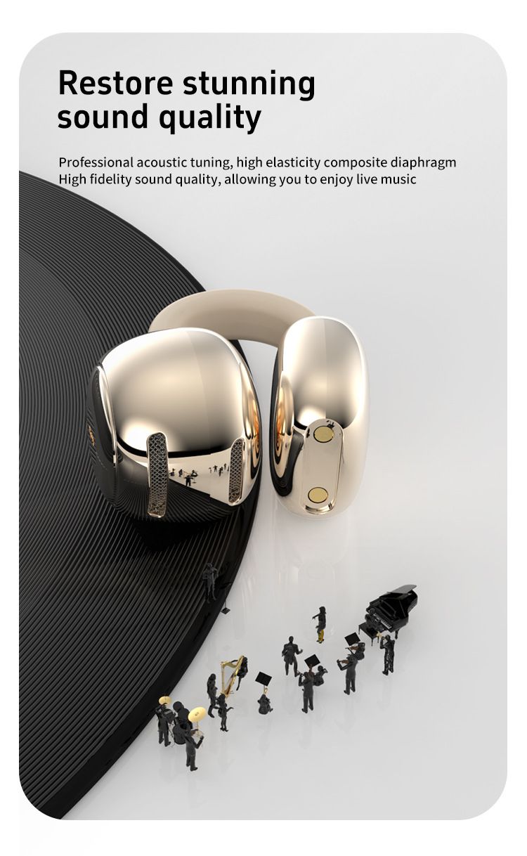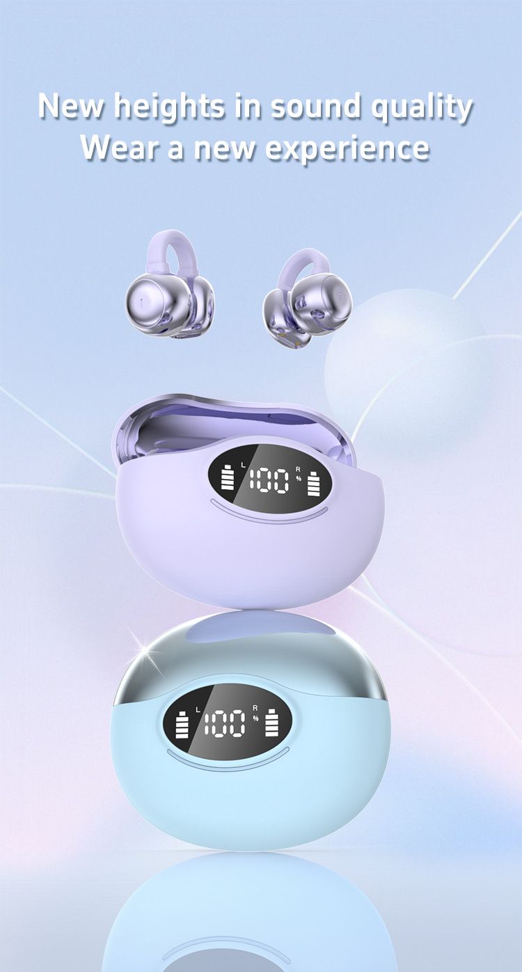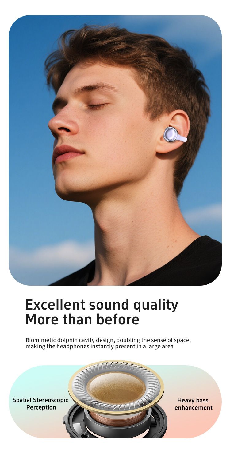 New clip-on Bluetooth earphones with electroplated high-quality sound, non-in-ear design, and ultra-long battery life - sports earphones