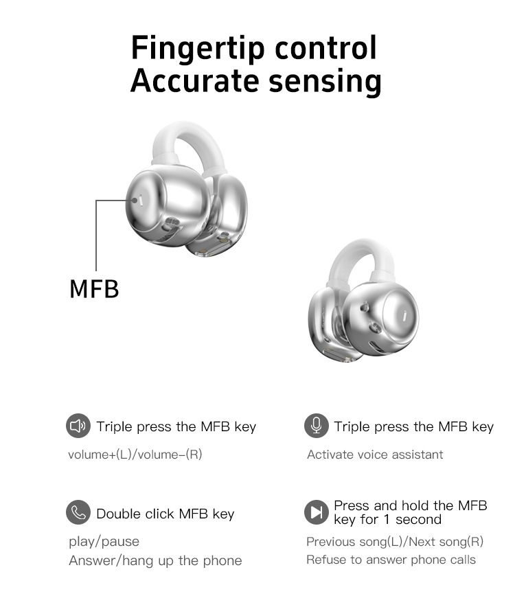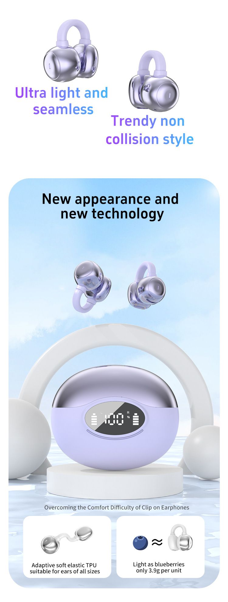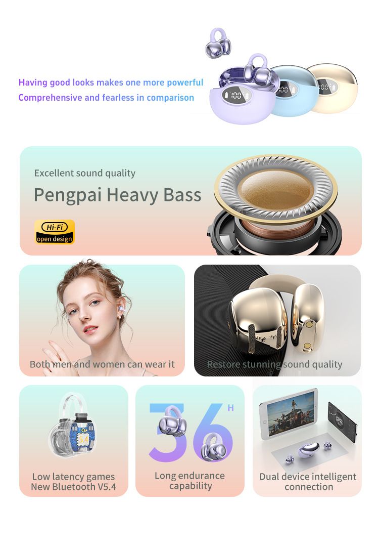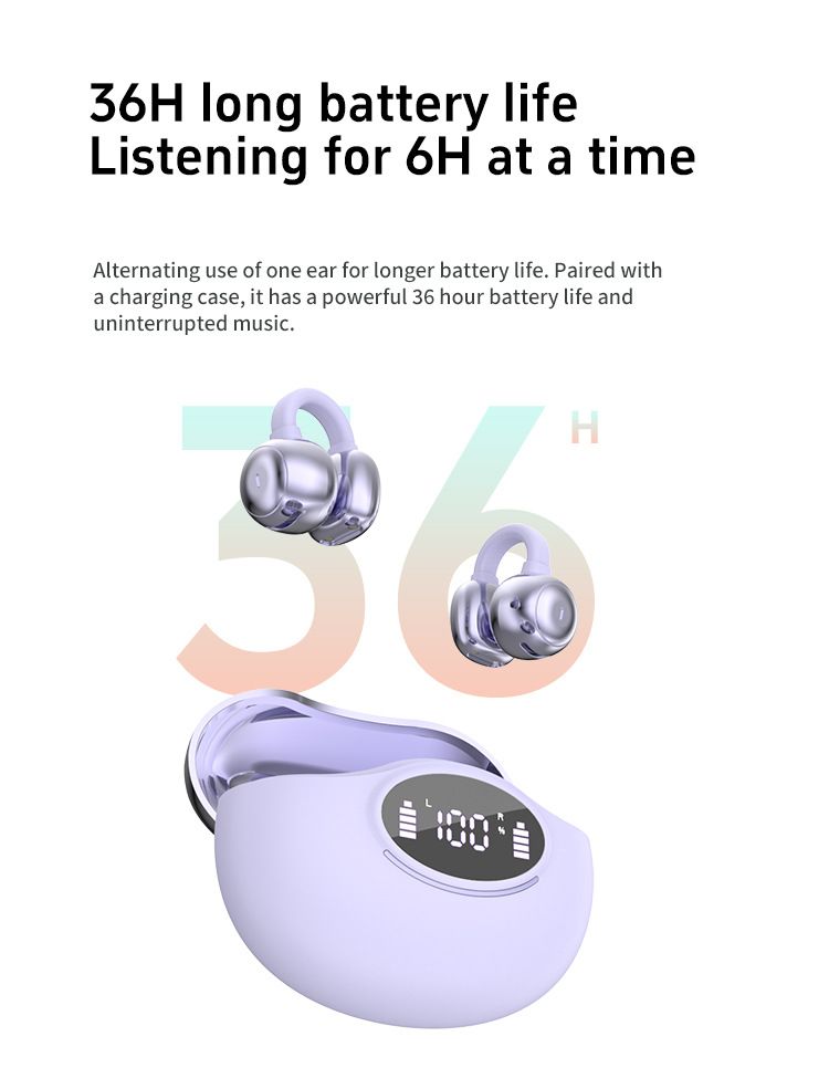 New clip-on Bluetooth earphones with electroplated high-quality sound, non-in-ear design, and ultra-long battery life - sports earphones