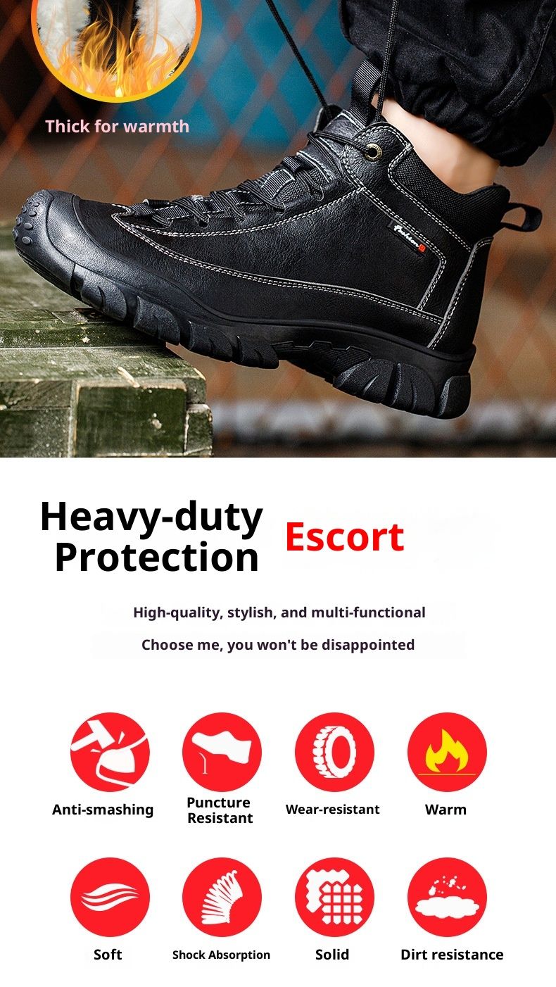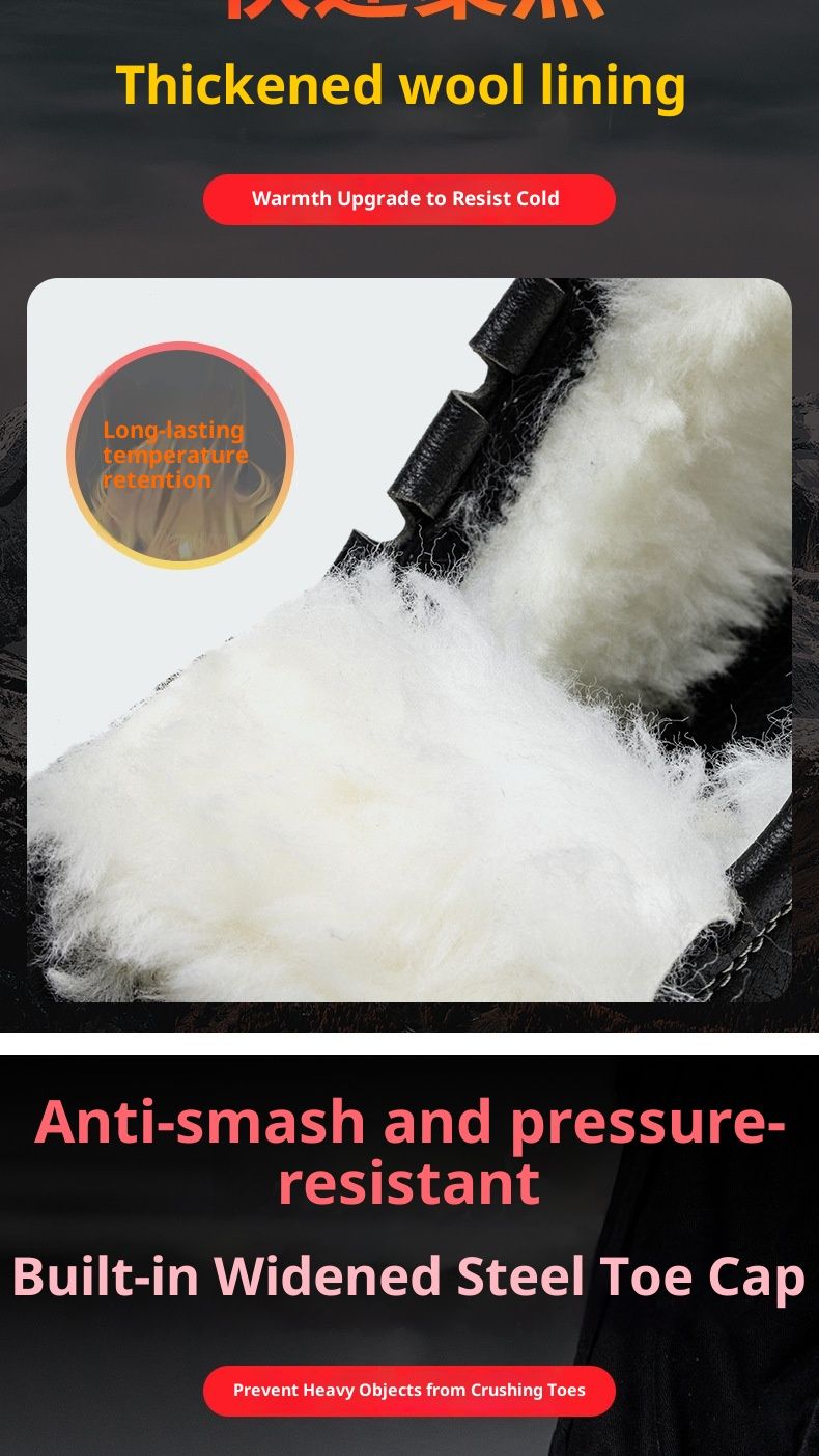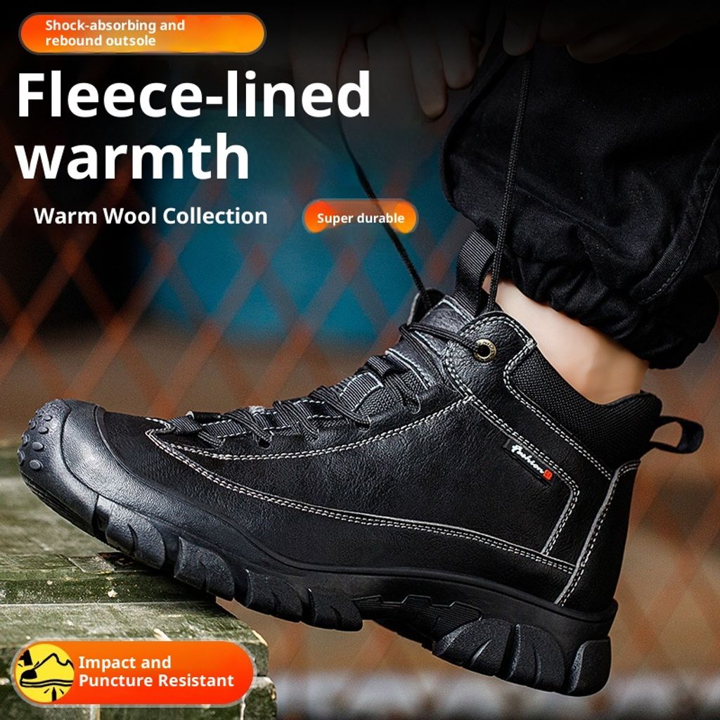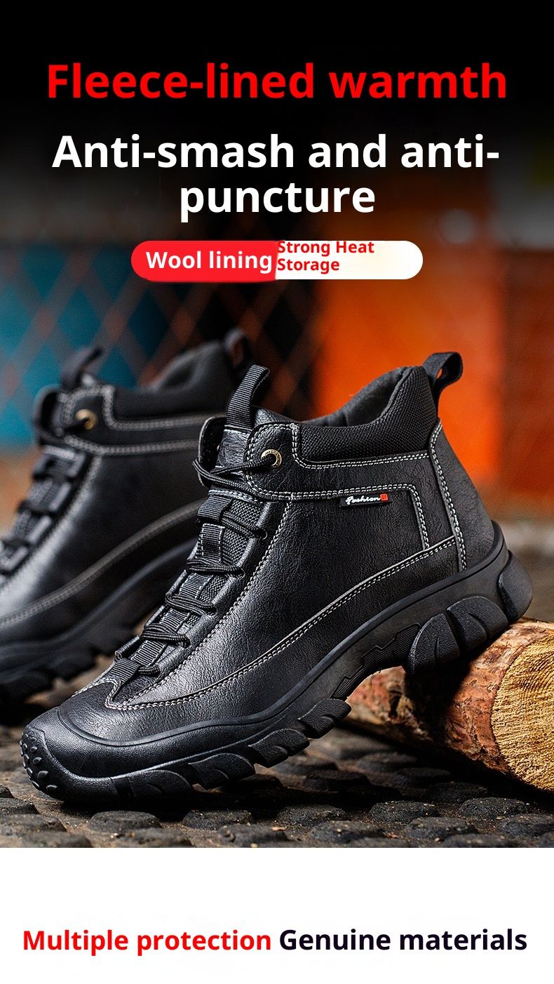 Safety shoes, crush and puncture resistant, thickened wool for heat retention, warm and wear-resistant