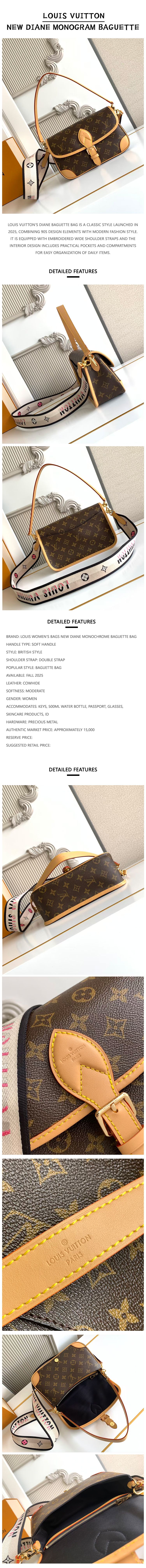 The same style Louis Vuitton women's bag, the new Diane monogram baguette bag.